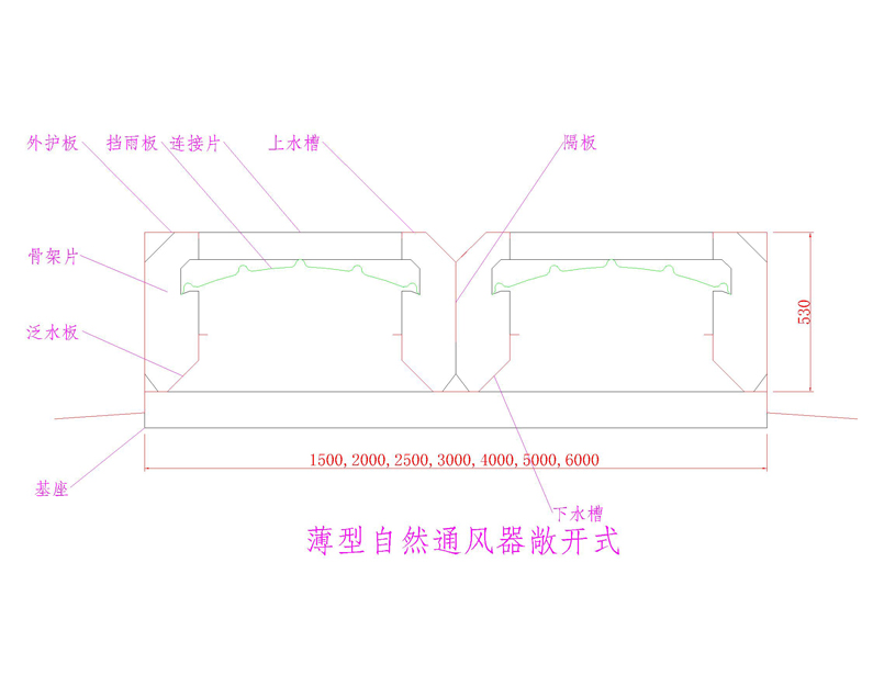 3000×n、4000×n (用于壓型鋼板或現(xiàn)澆混凝土屋面) 6000×n (用于預(yù)應(yīng)力鋼筋混凝土屋面板屋面) |